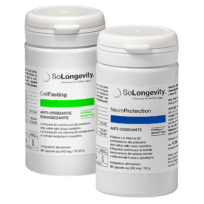Il trattamento mensile Solongevity Body&Mind Program è ideale per supportare il metabolismo energetico durante il giorno e favorire una migliore qualità di riposo durante il sonno, grazie all'azione NAD booster di Cellfasting e quelle Neuromodulante di NeuroProtection